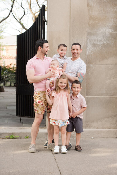 When it comes to choosing outfits for larger families, I recommend coordinating with one another ahead of time. Photographs typically come out best when families choose a color palette or a few colors over wearing the exact same thing (think: the white polo and khaki photo uniform of the 90’s.)